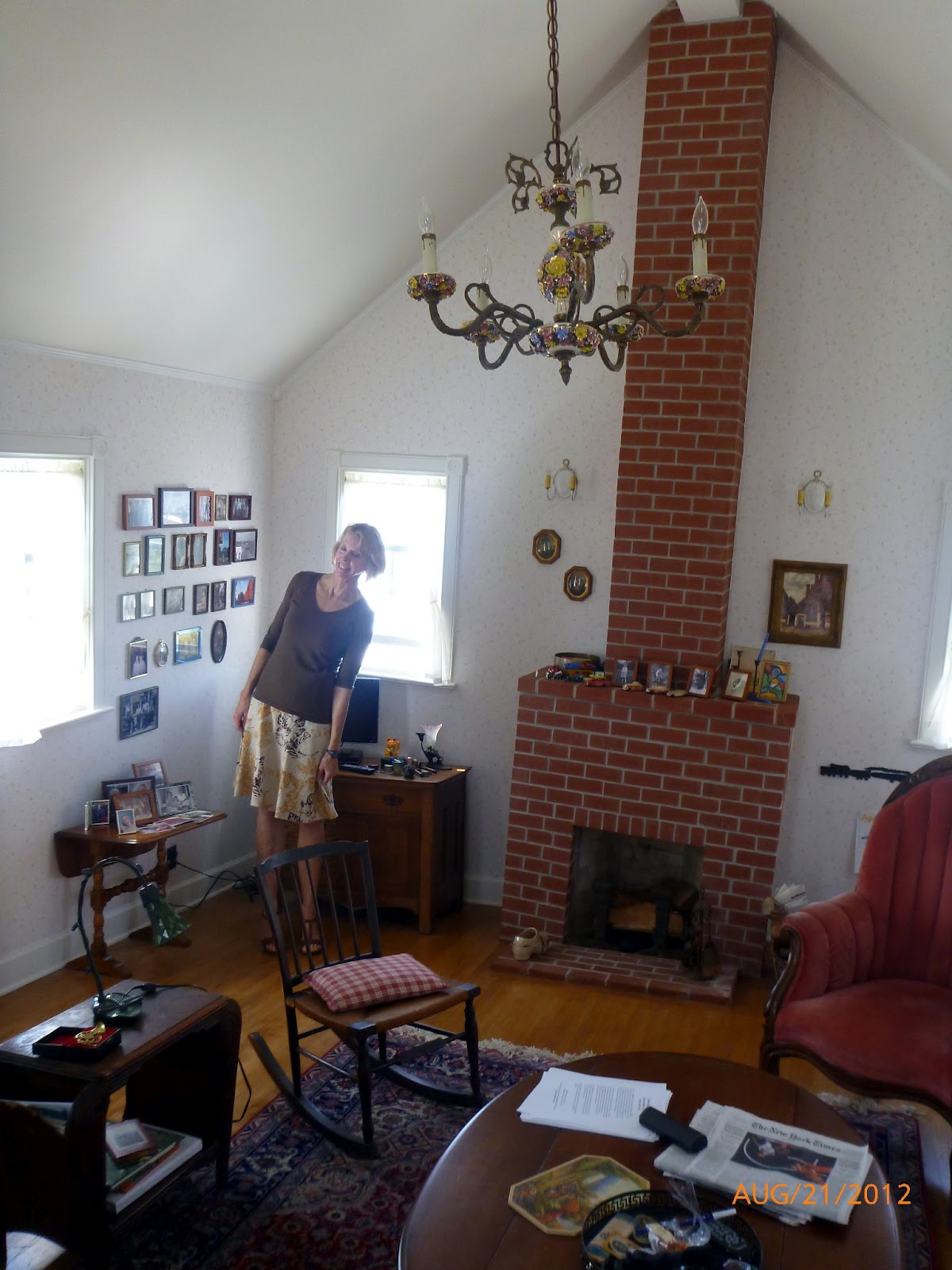When you walk into the house you can immediately tell that you are walking on a crooked floor but otherwise it doesn't seem that crooked. Notice the chandelier.....it is hanging from the ceiling, so it's vertical and you can tell how crooked everything else is compared to that. If you are interested in learning more about it, you can read the story here: http://stuartcollection.ucsd.edu/artists/suh.shtml Enjoy!
